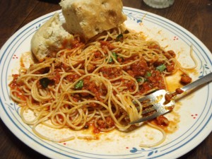 Focaccia bread and homemade spaghetti! I started eating before I took a picture. So HUNGRY